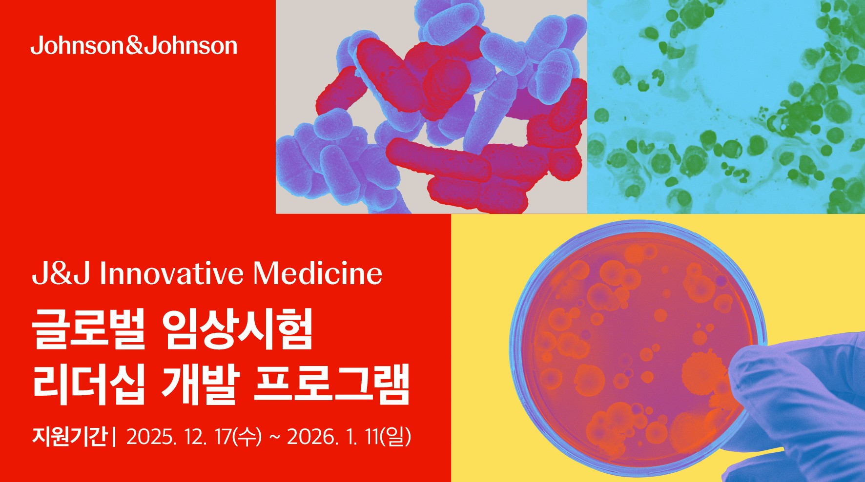 [Johnson&Johnson] 글로벌 임상시험 리더십 개발 프로그램 - 신청기간: 2025.12.17(수) ~ 2026.01.11(일) - 신청방법: Johnson&Johnson 채용 홈페이지를 통한 온라인 지원 |